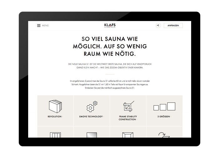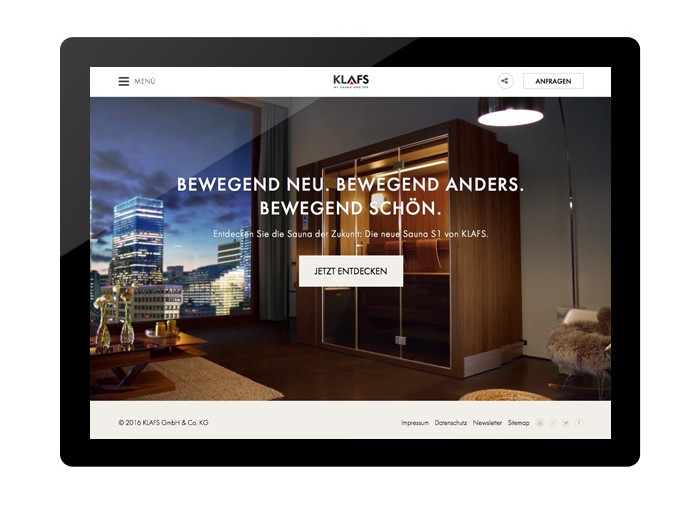 Für die neue Sauna S1 von KLAFS wurden zum Produktlaunch Kampagne und Website gestartet. Alle Fakte...